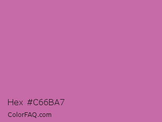 Hex #c66ba7 Color is a normal magenta color and the nearest color is Super Pink #cf6ba9. Hex code #c66ba7 and RGB value is rgb(198,107,167). In RGB color space, this color is composed of 78% red, 42% green, 65% blue, In CMYK color space, this color is composed of 0% cyan, 46% magenta, 16% yellow , 22% black , In HSL color space, this color has a hue angle of 320° , 44% saturation and 60% lightness.