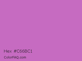 Hex #c66bc1 Color is a normal magenta color and the nearest color is Sky Magenta #cf71af. Hex code #c66bc1 and RGB value is rgb(198,107,193). In RGB color space, this color is composed of 78% red, 42% green, 76% blue, In CMYK color space, this color is composed of 0% cyan, 46% magenta, 3% yellow , 22% black , In HSL color space, this color has a hue angle of 303° , 44% saturation and 60% lightness.