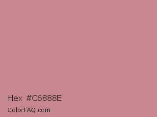 Hex #c6888e Color is a light red color and the nearest color is Oriental Pink #c69191. Hex code #c6888e and RGB value is rgb(198,136,142). In RGB color space, this color is composed of 78% red, 53% green, 56% blue, In CMYK color space, this color is composed of 0% cyan, 31% magenta, 28% yellow , 22% black , In HSL color space, this color has a hue angle of 354° , 35% saturation and 65% lightness.