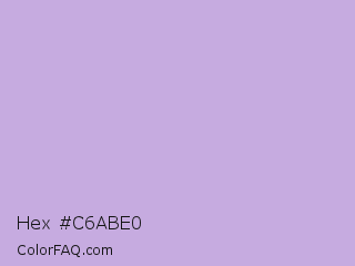 Hex #c6abe0 Color is a light purple color and the nearest color is Tropical Violet #cda4de. Hex code #c6abe0 and RGB value is rgb(198,171,224). In RGB color space, this color is composed of 78% red, 67% green, 88% blue, In CMYK color space, this color is composed of 12% cyan, 24% magenta, 0% yellow , 12% black , In HSL color space, this color has a hue angle of 271° , 46% saturation and 77% lightness.