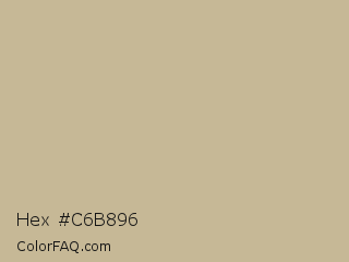Hex #c6b896 Color is a light orange color and the nearest color is Rodeo Dust #c9b29b. Hex code #c6b896 and RGB value is rgb(198,184,150). In RGB color space, this color is composed of 78% red, 72% green, 59% blue, In CMYK color space, this color is composed of 0% cyan, 7% magenta, 24% yellow , 22% black , In HSL color space, this color has a hue angle of 43° , 30% saturation and 68% lightness.