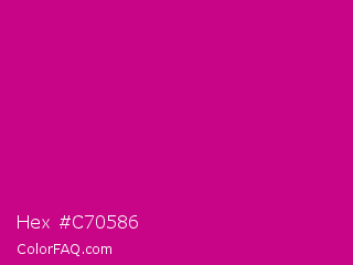 Hex #c70586 Color is a normal magenta color and the nearest color is Red Violet #c71585. Hex code #c70586 and RGB value is rgb(199,5,134). In RGB color space, this color is composed of 78% red, 2% green, 53% blue, In CMYK color space, this color is composed of 0% cyan, 97% magenta, 33% yellow , 22% black , In HSL color space, this color has a hue angle of 320° , 95% saturation and 40% lightness.