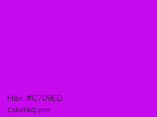 Hex #c709ed Color is a normal purple color and the nearest color is Vivid Mulberry #b80ce3. Hex code #c709ed and RGB value is rgb(199,9,237). In RGB color space, this color is composed of 78% red, 4% green, 93% blue, In CMYK color space, this color is composed of 16% cyan, 96% magenta, 0% yellow , 7% black , In HSL color space, this color has a hue angle of 290° , 93% saturation and 48% lightness.