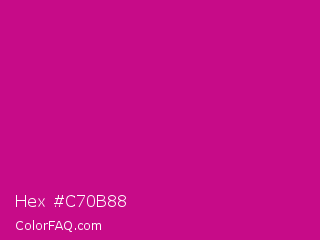 Hex #c70b88 Color is a normal magenta color and the nearest color is Red Violet #c71585. Hex code #c70b88 and RGB value is rgb(199,11,136). In RGB color space, this color is composed of 78% red, 4% green, 53% blue, In CMYK color space, this color is composed of 0% cyan, 94% magenta, 32% yellow , 22% black , In HSL color space, this color has a hue angle of 320° , 90% saturation and 41% lightness.