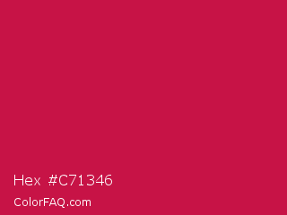 Hex #c71346 Color is a normal rose color and the nearest color is Pictorial Carmine #c30b4e. Hex code #c71346 and RGB value is rgb(199,19,70). In RGB color space, this color is composed of 78% red, 7% green, 27% blue, In CMYK color space, this color is composed of 0% cyan, 90% magenta, 65% yellow , 22% black , In HSL color space, this color has a hue angle of 343° , 83% saturation and 43% lightness.