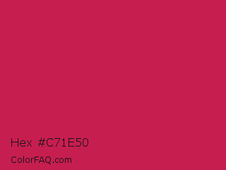 Hex #c71e50 Color is a normal rose color and the nearest color is Rose Red #c21e56. Hex code #c71e50 and RGB value is rgb(199,30,80). In RGB color space, this color is composed of 78% red, 12% green, 31% blue, In CMYK color space, this color is composed of 0% cyan, 85% magenta, 60% yellow , 22% black , In HSL color space, this color has a hue angle of 342° , 74% saturation and 45% lightness.
