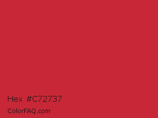 Hex #c72737 Color is a normal red color and the nearest color is Cardinal #c41e3a. Hex code #c72737 and RGB value is rgb(199,39,55). In RGB color space, this color is composed of 78% red, 15% green, 22% blue, In CMYK color space, this color is composed of 0% cyan, 80% magenta, 72% yellow , 22% black , In HSL color space, this color has a hue angle of 354° , 67% saturation and 47% lightness.