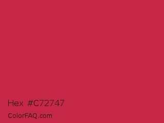 Hex #c72747 Color is a normal red color and the nearest color is French Raspberry #c72c48. Hex code #c72747 and RGB value is rgb(199,39,71). In RGB color space, this color is composed of 78% red, 15% green, 28% blue, In CMYK color space, this color is composed of 0% cyan, 80% magenta, 64% yellow , 22% black , In HSL color space, this color has a hue angle of 348° , 67% saturation and 47% lightness.
