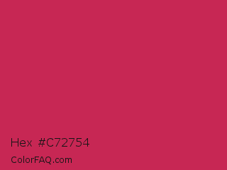 Hex #c72754 Color is a normal rose color and the nearest color is Rose Red #c21e56. Hex code #c72754 and RGB value is rgb(199,39,84). In RGB color space, this color is composed of 78% red, 15% green, 33% blue, In CMYK color space, this color is composed of 0% cyan, 80% magenta, 58% yellow , 22% black , In HSL color space, this color has a hue angle of 343° , 67% saturation and 47% lightness.