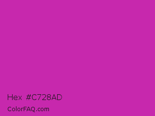 Hex #c728ad Color is a normal magenta color and the nearest color is Byzantine #bd33a4. Hex code #c728ad and RGB value is rgb(199,40,173). In RGB color space, this color is composed of 78% red, 16% green, 68% blue, In CMYK color space, this color is composed of 0% cyan, 80% magenta, 13% yellow , 22% black , In HSL color space, this color has a hue angle of 310° , 67% saturation and 47% lightness.