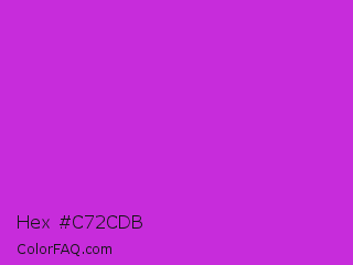 Hex #c72cdb Color is a normal magenta color and the nearest color is Steel Pink #cc33cc. Hex code #c72cdb and RGB value is rgb(199,44,219). In RGB color space, this color is composed of 78% red, 17% green, 86% blue, In CMYK color space, this color is composed of 9% cyan, 80% magenta, 0% yellow , 14% black , In HSL color space, this color has a hue angle of 293° , 71% saturation and 52% lightness.