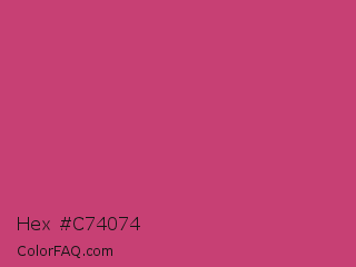 Hex #c74074 Color is a normal rose color and the nearest color is Fuchsia Rose #c74375. Hex code #c74074 and RGB value is rgb(199,64,116). In RGB color space, this color is composed of 78% red, 25% green, 45% blue, In CMYK color space, this color is composed of 0% cyan, 68% magenta, 42% yellow , 22% black , In HSL color space, this color has a hue angle of 337° , 55% saturation and 52% lightness.