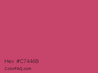 Hex #c7446b Color is a normal rose color and the nearest color is Fuchsia Rose #c74375. Hex code #c7446b and RGB value is rgb(199,68,107). In RGB color space, this color is composed of 78% red, 27% green, 42% blue, In CMYK color space, this color is composed of 0% cyan, 66% magenta, 46% yellow , 22% black , In HSL color space, this color has a hue angle of 342° , 54% saturation and 52% lightness.
