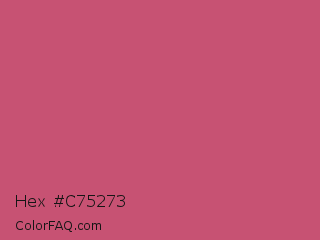 Hex #c75273 Color is a normal rose color and the nearest color is Ruber #ce4676. Hex code #c75273 and RGB value is rgb(199,82,115). In RGB color space, this color is composed of 78% red, 32% green, 45% blue, In CMYK color space, this color is composed of 0% cyan, 59% magenta, 42% yellow , 22% black , In HSL color space, this color has a hue angle of 343° , 51% saturation and 55% lightness.