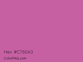 Hex #c760a3 Color is a normal magenta color and the nearest color is Super Pink #cf6ba9. Hex code #c760a3 and RGB value is rgb(199,96,163). In RGB color space, this color is composed of 78% red, 38% green, 64% blue, In CMYK color space, this color is composed of 0% cyan, 52% magenta, 18% yellow , 22% black , In HSL color space, this color has a hue angle of 321° , 48% saturation and 58% lightness.