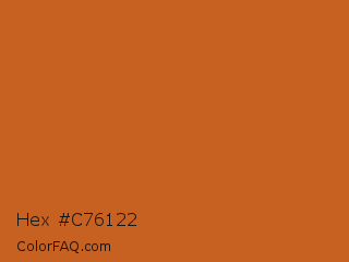 Hex #c76122 Color is a normal orange color and the nearest color is Piper #c96323. Hex code #c76122 and RGB value is rgb(199,97,34). In RGB color space, this color is composed of 78% red, 38% green, 13% blue, In CMYK color space, this color is composed of 0% cyan, 51% magenta, 83% yellow , 22% black , In HSL color space, this color has a hue angle of 23° , 71% saturation and 46% lightness.
