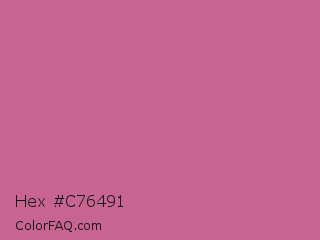 Hex #c76491 Color is a normal rose color and the nearest color is Cinnamon Satin #cd607e. Hex code #c76491 and RGB value is rgb(199,100,145). In RGB color space, this color is composed of 78% red, 39% green, 57% blue, In CMYK color space, this color is composed of 0% cyan, 50% magenta, 27% yellow , 22% black , In HSL color space, this color has a hue angle of 333° , 47% saturation and 59% lightness.