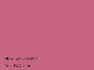 Hex #c76682 Color is a normal rose color and the nearest color is Cinnamon Satin #cd607e. Hex code #c76682 and RGB value is rgb(199,102,130). In RGB color space, this color is composed of 78% red, 40% green, 51% blue, In CMYK color space, this color is composed of 0% cyan, 49% magenta, 35% yellow , 22% black , In HSL color space, this color has a hue angle of 343° , 46% saturation and 59% lightness.