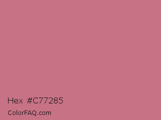 Hex #c77285 Color is a light red color and the nearest color is Old Rose #c08081. Hex code #c77285 and RGB value is rgb(199,114,133). In RGB color space, this color is composed of 78% red, 45% green, 52% blue, In CMYK color space, this color is composed of 0% cyan, 43% magenta, 33% yellow , 22% black , In HSL color space, this color has a hue angle of 347° , 43% saturation and 61% lightness.
