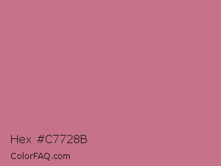 Hex #c7728b Color is a light rose color and the nearest color is Charm #d47494. Hex code #c7728b and RGB value is rgb(199,114,139). In RGB color space, this color is composed of 78% red, 45% green, 55% blue, In CMYK color space, this color is composed of 0% cyan, 43% magenta, 30% yellow , 22% black , In HSL color space, this color has a hue angle of 342° , 43% saturation and 61% lightness.