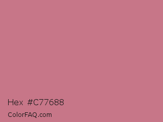 Hex #c77688 Color is a light red color and the nearest color is Old Rose #c08081. Hex code #c77688 and RGB value is rgb(199,118,136). In RGB color space, this color is composed of 78% red, 46% green, 53% blue, In CMYK color space, this color is composed of 0% cyan, 41% magenta, 32% yellow , 22% black , In HSL color space, this color has a hue angle of 347° , 42% saturation and 62% lightness.