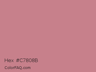 Hex #c7808b Color is a light red color and the nearest color is Old Rose #c08081. Hex code #c7808b and RGB value is rgb(199,128,139). In RGB color space, this color is composed of 78% red, 50% green, 55% blue, In CMYK color space, this color is composed of 0% cyan, 36% magenta, 30% yellow , 22% black , In HSL color space, this color has a hue angle of 351° , 39% saturation and 64% lightness.