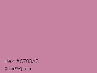 Hex #c783a2 Color is a light rose color and the nearest color is Puce #cc8899. Hex code #c783a2 and RGB value is rgb(199,131,162). In RGB color space, this color is composed of 78% red, 51% green, 64% blue, In CMYK color space, this color is composed of 0% cyan, 34% magenta, 19% yellow , 22% black , In HSL color space, this color has a hue angle of 333° , 38% saturation and 65% lightness.