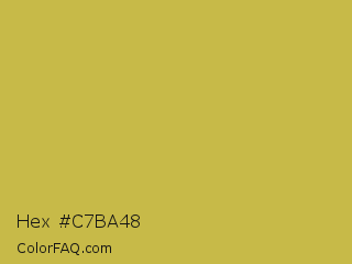 Hex #c7ba48 Color is a normal yellow color and the nearest color is Turmeric #cabb48. Hex code #c7ba48 and RGB value is rgb(199,186,72). In RGB color space, this color is composed of 78% red, 73% green, 28% blue, In CMYK color space, this color is composed of 0% cyan, 7% magenta, 64% yellow , 22% black , In HSL color space, this color has a hue angle of 54° , 53% saturation and 53% lightness.