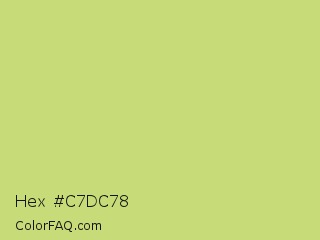 Hex #c7dc78 Color is a light lime color and the nearest color is Yellow Green #c5e17a. Hex code #c7dc78 and RGB value is rgb(199,220,120). In RGB color space, this color is composed of 78% red, 86% green, 47% blue, In CMYK color space, this color is composed of 10% cyan, 0% magenta, 45% yellow , 14% black , In HSL color space, this color has a hue angle of 73° , 59% saturation and 67% lightness.