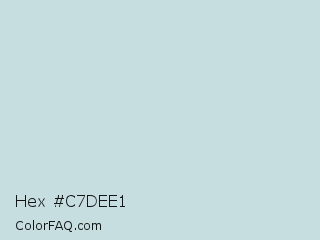 Hex #c7dee1 Color is a very light cyan color and the nearest color is Botticelli #c7dde5. Hex code #c7dee1 and RGB value is rgb(199,222,225). In RGB color space, this color is composed of 78% red, 87% green, 88% blue, In CMYK color space, this color is composed of 12% cyan, 1% magenta, 0% yellow , 12% black , In HSL color space, this color has a hue angle of 187° , 30% saturation and 83% lightness.