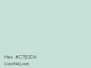 Hex #c7e0da Color is a very light cyan color and the nearest color is Edgewater #c8e3d7. Hex code #c7e0da and RGB value is rgb(199,224,218). In RGB color space, this color is composed of 78% red, 88% green, 85% blue, In CMYK color space, this color is composed of 11% cyan, 0% magenta, 3% yellow , 12% black , In HSL color space, this color has a hue angle of 166° , 29% saturation and 83% lightness.
