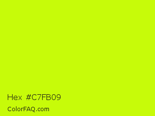 Hex #c7fb09 Color is a normal lime color and the nearest color is Electric Lime #ccff00. Hex code #c7fb09 and RGB value is rgb(199,251,9). In RGB color space, this color is composed of 78% red, 98% green, 4% blue, In CMYK color space, this color is composed of 21% cyan, 0% magenta, 96% yellow , 2% black , In HSL color space, this color has a hue angle of 73° , 97% saturation and 51% lightness.