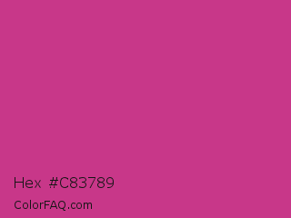 Hex #c83789 Color is a normal magenta color and the nearest color is Magenta Pink #cc338b. Hex code #c83789 and RGB value is rgb(200,55,137). In RGB color space, this color is composed of 78% red, 22% green, 54% blue, In CMYK color space, this color is composed of 0% cyan, 73% magenta, 32% yellow , 22% black , In HSL color space, this color has a hue angle of 326° , 57% saturation and 50% lightness.