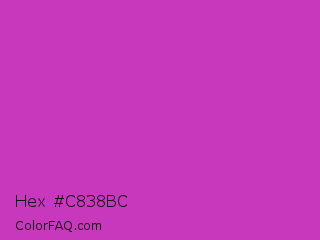 Hex #c838bc Color is a normal magenta color and the nearest color is Steel Pink #cc33cc. Hex code #c838bc and RGB value is rgb(200,56,188). In RGB color space, this color is composed of 78% red, 22% green, 74% blue, In CMYK color space, this color is composed of 0% cyan, 72% magenta, 6% yellow , 22% black , In HSL color space, this color has a hue angle of 305° , 57% saturation and 50% lightness.