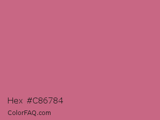 Hex #c86784 Color is a normal rose color and the nearest color is Cinnamon Satin #cd607e. Hex code #c86784 and RGB value is rgb(200,103,132). In RGB color space, this color is composed of 78% red, 40% green, 52% blue, In CMYK color space, this color is composed of 0% cyan, 49% magenta, 34% yellow , 22% black , In HSL color space, this color has a hue angle of 342° , 47% saturation and 59% lightness.