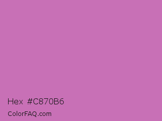 Hex #c870b6 Color is a light magenta color and the nearest color is Sky Magenta #cf71af. Hex code #c870b6 and RGB value is rgb(200,112,182). In RGB color space, this color is composed of 78% red, 44% green, 71% blue, In CMYK color space, this color is composed of 0% cyan, 44% magenta, 9% yellow , 22% black , In HSL color space, this color has a hue angle of 312° , 44% saturation and 61% lightness.