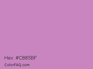 Hex #c885bf Color is a light magenta color and the nearest color is Middle Purple #d982b5. Hex code #c885bf and RGB value is rgb(200,133,191). In RGB color space, this color is composed of 78% red, 52% green, 75% blue, In CMYK color space, this color is composed of 0% cyan, 34% magenta, 5% yellow , 22% black , In HSL color space, this color has a hue angle of 308° , 38% saturation and 65% lightness.
