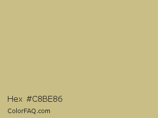Hex #c8be86 Color is a light yellow color and the nearest color is Sorrell Brown #ceb98f. Hex code #c8be86 and RGB value is rgb(200,190,134). In RGB color space, this color is composed of 78% red, 75% green, 53% blue, In CMYK color space, this color is composed of 0% cyan, 5% magenta, 33% yellow , 22% black , In HSL color space, this color has a hue angle of 51° , 38% saturation and 65% lightness.