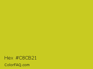 Hex #c8cb21 Color is a normal yellow color and the nearest color is Key Lime Pie #bfc921. Hex code #c8cb21 and RGB value is rgb(200,203,33). In RGB color space, this color is composed of 78% red, 80% green, 13% blue, In CMYK color space, this color is composed of 1% cyan, 0% magenta, 84% yellow , 20% black , In HSL color space, this color has a hue angle of 61° , 72% saturation and 46% lightness.
