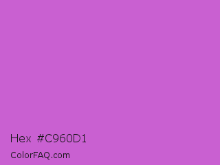 Hex #c960d1 Color is a normal magenta color and the nearest color is Medium Orchid #ba55d3. Hex code #c960d1 and RGB value is rgb(201,96,209). In RGB color space, this color is composed of 79% red, 38% green, 82% blue, In CMYK color space, this color is composed of 4% cyan, 54% magenta, 0% yellow , 18% black , In HSL color space, this color has a hue angle of 296° , 55% saturation and 60% lightness.