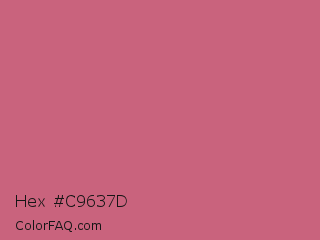 Hex #c9637d Color is a normal red color and the nearest color is Cinnamon Satin #cd607e. Hex code #c9637d and RGB value is rgb(201,99,125). In RGB color space, this color is composed of 79% red, 39% green, 49% blue, In CMYK color space, this color is composed of 0% cyan, 51% magenta, 38% yellow , 21% black , In HSL color space, this color has a hue angle of 345° , 49% saturation and 59% lightness.
