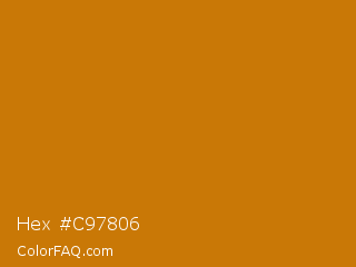 Hex #c97806 Color is a normal orange color and the nearest color is Meteor #d07d12. Hex code #c97806 and RGB value is rgb(201,120,6). In RGB color space, this color is composed of 79% red, 47% green, 2% blue, In CMYK color space, this color is composed of 0% cyan, 40% magenta, 97% yellow , 21% black , In HSL color space, this color has a hue angle of 35° , 94% saturation and 41% lightness.