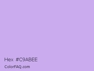 Hex #c9abee Color is a light violet color and the nearest color is Bright Ube #d19fe8. Hex code #c9abee and RGB value is rgb(201,171,238). In RGB color space, this color is composed of 79% red, 67% green, 93% blue, In CMYK color space, this color is composed of 16% cyan, 28% magenta, 0% yellow , 7% black , In HSL color space, this color has a hue angle of 267° , 66% saturation and 80% lightness.