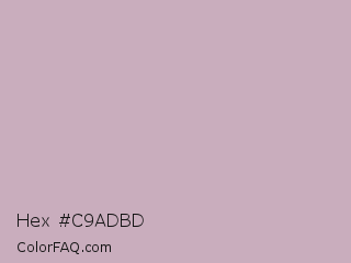 Hex #c9adbd Color is a light magenta color and the nearest color is Lily #c8aabf. Hex code #c9adbd and RGB value is rgb(201,173,189). In RGB color space, this color is composed of 79% red, 68% green, 74% blue, In CMYK color space, this color is composed of 0% cyan, 14% magenta, 6% yellow , 21% black , In HSL color space, this color has a hue angle of 326° , 21% saturation and 73% lightness.