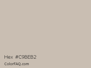 Hex #c9beb2 Color is a light orange color and the nearest color is Ash #c6c3b5. Hex code #c9beb2 and RGB value is rgb(201,190,178). In RGB color space, this color is composed of 79% red, 75% green, 70% blue, In CMYK color space, this color is composed of 0% cyan, 5% magenta, 11% yellow , 21% black , In HSL color space, this color has a hue angle of 31° , 18% saturation and 74% lightness.