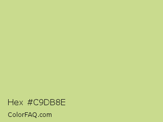 Hex #c9db8e Color is a light lime color and the nearest color is Medium Spring Bud #c9dc87. Hex code #c9db8e and RGB value is rgb(201,219,142). In RGB color space, this color is composed of 79% red, 86% green, 56% blue, In CMYK color space, this color is composed of 8% cyan, 0% magenta, 35% yellow , 14% black , In HSL color space, this color has a hue angle of 74° , 52% saturation and 71% lightness.