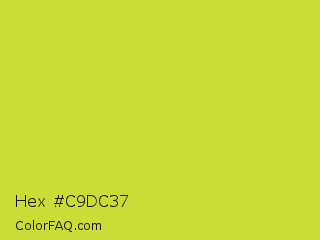 Hex #c9dc37 Color is a normal yellow color and the nearest color is Pear #d1e231. Hex code #c9dc37 and RGB value is rgb(201,220,55). In RGB color space, this color is composed of 79% red, 86% green, 22% blue, In CMYK color space, this color is composed of 9% cyan, 0% magenta, 75% yellow , 14% black , In HSL color space, this color has a hue angle of 67° , 70% saturation and 54% lightness.