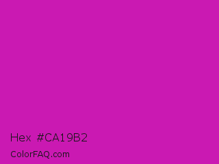 Hex #ca19b2 Color is a normal magenta color and the nearest color is Byzantine #bd33a4. Hex code #ca19b2 and RGB value is rgb(202,25,178). In RGB color space, this color is composed of 79% red, 10% green, 70% blue, In CMYK color space, this color is composed of 0% cyan, 88% magenta, 12% yellow , 21% black , In HSL color space, this color has a hue angle of 308° , 78% saturation and 45% lightness.