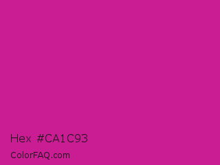 Hex #ca1c93 Color is a normal magenta color and the nearest color is Red Violet #c71585. Hex code #ca1c93 and RGB value is rgb(202,28,147). In RGB color space, this color is composed of 79% red, 11% green, 58% blue, In CMYK color space, this color is composed of 0% cyan, 86% magenta, 27% yellow , 21% black , In HSL color space, this color has a hue angle of 319° , 76% saturation and 45% lightness.