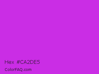 Hex #ca2de5 Color is a normal purple color and the nearest color is Steel Pink #cc33cc. Hex code #ca2de5 and RGB value is rgb(202,45,229). In RGB color space, this color is composed of 79% red, 18% green, 90% blue, In CMYK color space, this color is composed of 12% cyan, 80% magenta, 0% yellow , 10% black , In HSL color space, this color has a hue angle of 291° , 78% saturation and 54% lightness.